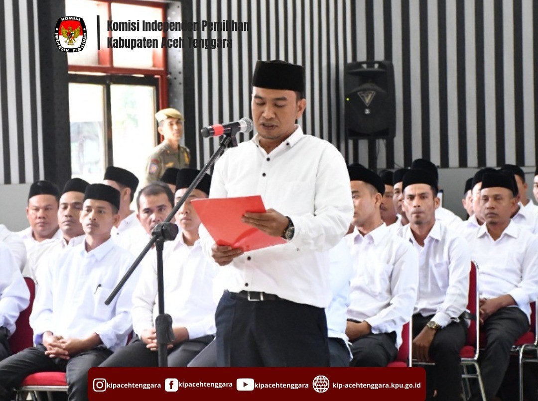 proses pelantikan Panitia Pemilihan Kecamatan (PPK) sebanyak 80 orang se-Kabupaten Aceh Tenggara untuk Penyelenggaraan Pemilu Tahun 2024 (4/12/2023) sekaligus Bimbingan Teknis ( Bimtek) Tata Kerja.
